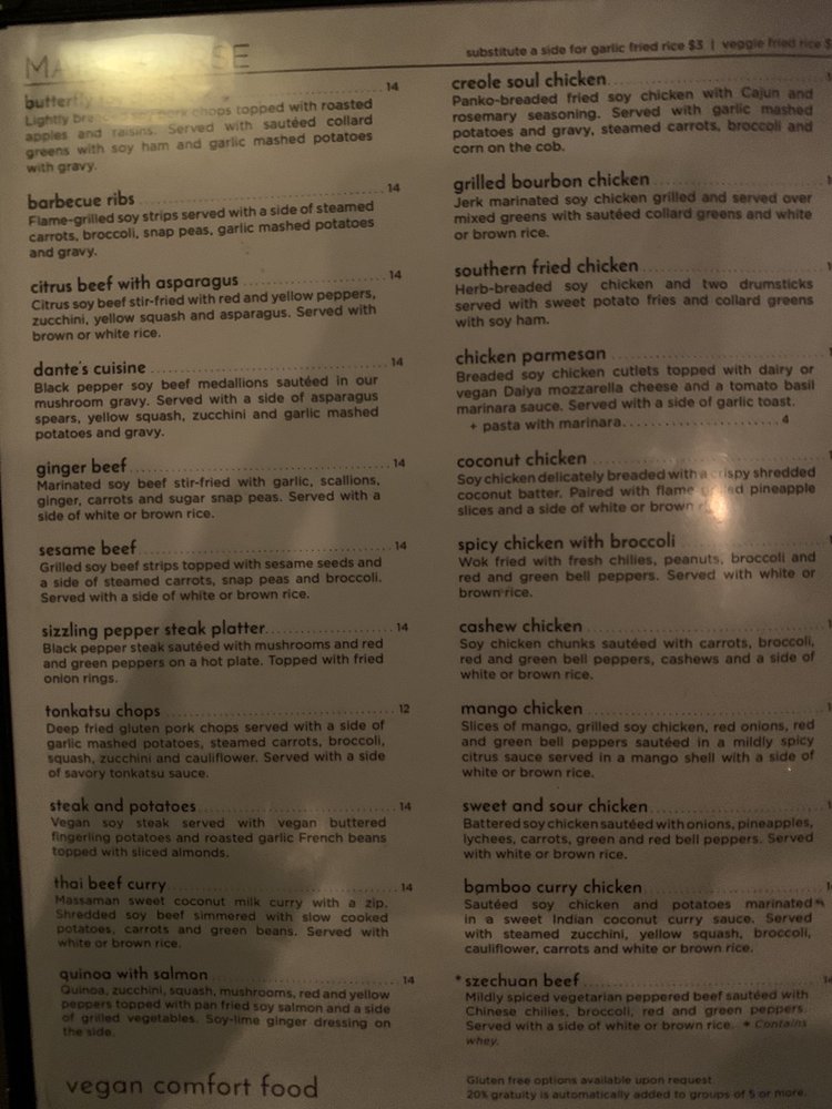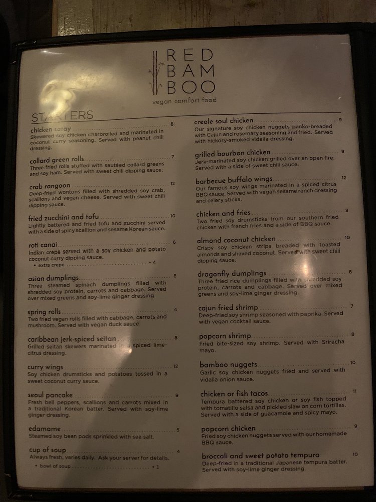 Red Bamboo is a vegan and vegetarian soul food restaurant located in New York City. With a diverse menu offering pescatarian and vegan options, this Asian, LGBTQ, and women-owned establishment provides delivery, takeout, and reservations. The extensive menu features dishes like roti canai, beef curry, and spicy chicken with broccoli, all consistently made and delicious. Customers praise the friendly service and the variety of vegan protein options like seitan and soy. The restaurant also caters to those craving meat with soy meat recreations. While some find the menu less vegetable-focused, the vegan cob salad with grilled soy chicken stands out as a favorite. Overall, Red Bamboo offers a unique dining experience with a focus on plant-based cuisine, making it a must-try for vegans and vegetarians alike.